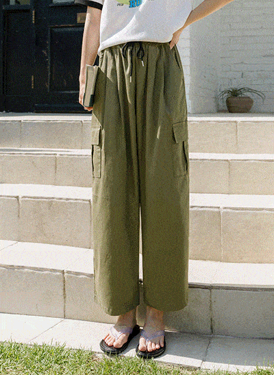 한여름에도 시원하고 트렌디하게 입기 좋은 카고팬츠에요 여유있는 와이드핏에 허리밴딩으로 편안한 착용감을 느끼실 수 있으면서 베이직한 컬러구성으로 다양한 스타일링을 하시기 좋답니다:)