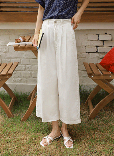 - 6DA30010NN_여름날 코튼린넨 뒷밴딩 와이드팬츠