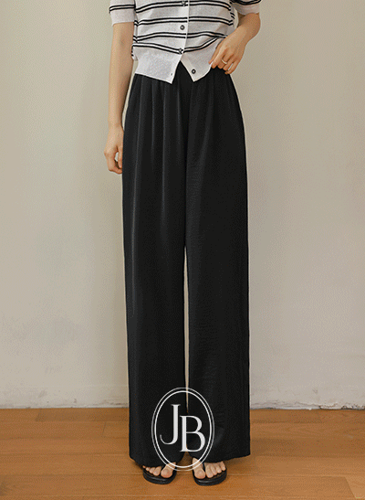 글로시한 터치로 고급스럽고, 살랑거리는 시원한 원단으로 제작된 밴딩 팬츠! 결감이 없는 매끈함으로 보풀 걱정 없이 차르르르-! 일자 와이드 핏으로 깔끔하면서도 슬림해 보이며, 비침도 적어 좋아요♥