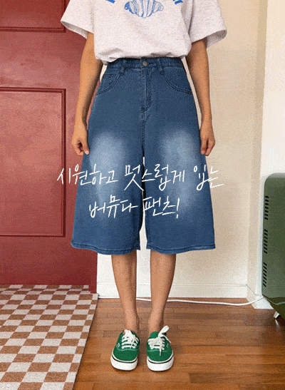 -7도의 시원함! 올여름 몸의 온도를 낮춰줄 데님팬츠에요 체형보완이 되는 와이드핏의 버뮤다 디자인에 후들~후들 가벼운 무게감으로 착용감이 정말 편안하면서 더운날에도 걱정 없이 입으실 수 있어요