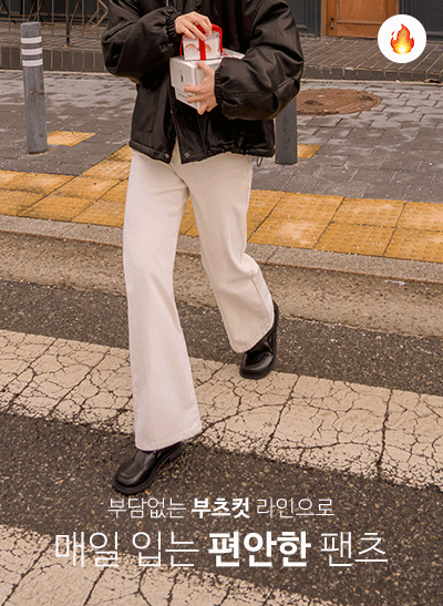 치즈처럼 쭈~욱 늘어나는 소재의 팬츠 시리즈 2탄! 이번에는 다리가 예뻐 보이는 부츠컷으로 준비했어요~ 너무 부담스럽지 않은 여유핏으로 군살은 커버해주고 다리가 길어 보이는 핏이랍니다 -