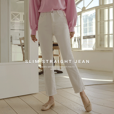환경을 생각하는 에코 워싱으로 가치 있는 소비가 가능한 데님이구요~ 밑단이 내추럴하게 컷팅되어 무거움 없이 산뜻하며, 일자 와이드 핏으로 군살은 커버되면서 실루엣은 깔끔하게 연출돼요! -