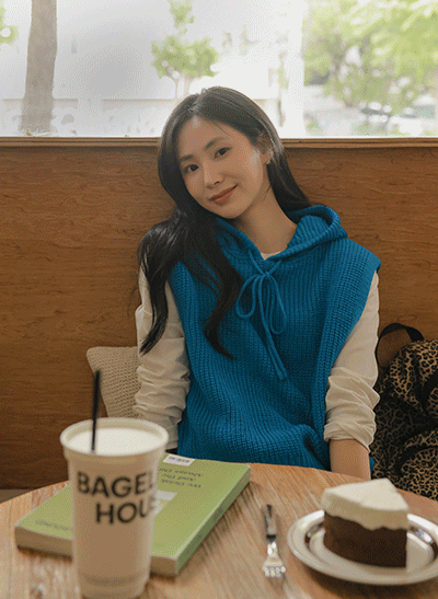 캐주얼하면서도 귀여운 무드를 더해주는 후드 니트 조끼! 다양한 아이템과 매치해서 입기 좋으며, 벌집 모양 같은 하찌 짜임이 은은하게 입체감을 더해주어 예뻐요~ -
