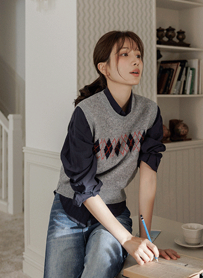 다양한 상의 아이템과 레이어드하기 좋은 니트 조끼예요! -