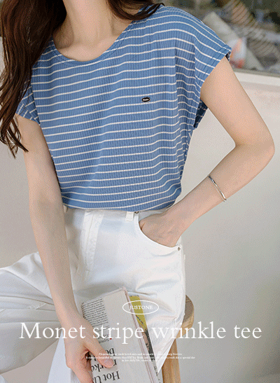 - 4OA0878HN_[JUST BETTER] 모네 스트라이프 링클주름 티