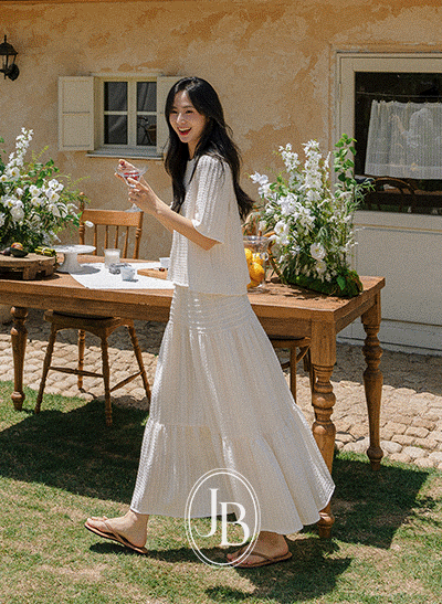 입체적인 웨이브 디테일로 러블리한 페미닌 감성이 느껴지는 아이템! 블라우스는 내어 입기 좋은 산뜻한 기장감이며, 스커트는 롱기장으로 황금 비율 완성♥ 코디 세트로 더 알뜰하게 챙겨가세요~ - 56,800원