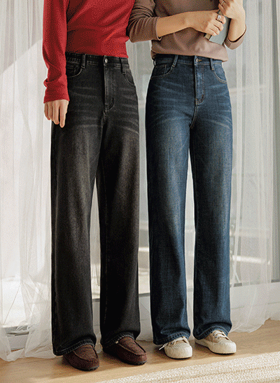 편안함은 기본, 따뜻함과 부드러움까지 갖춘 와이드진이에요 융기모로 올 겨울 더욱 따뜻하게 보내실 수 있구요 쫀쫀하게 슬림한 실루엣을 딱 잡아드려요! -
