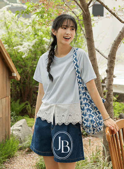 - 5OA0869NN_[JUST BETTER] 엘레나 레이스 레이어드 크롭티