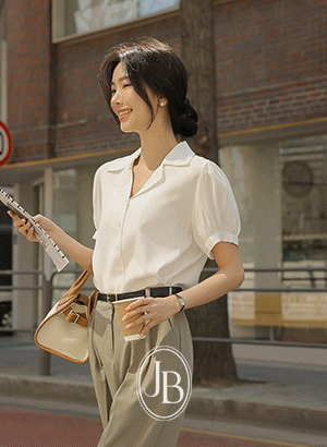 - 5OA0688JJ_[JUST BETTER] 촉촉쿨링 오픈카라 퍼프블라우스