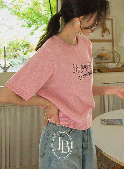 멋스러운 필기체 레터링이 포인트가 되는 린넨 반팔 니트! 색감마저 예뻐 심플한 하의와 코디해도 포인트가 되어줘요~ -