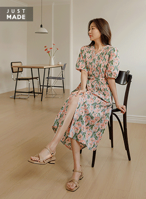 - 8OA0583HH_셀럼 핀턱 플라워 코튼원피스(벨트set)