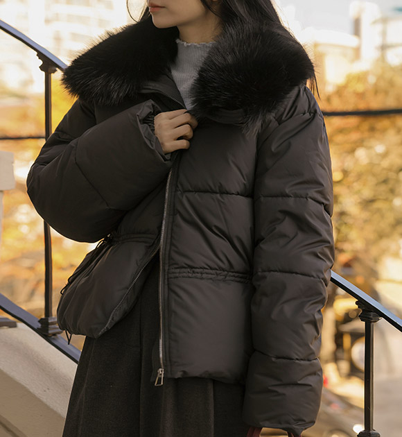 4DA32215NN_탈부착 퍼 투스트링 패딩