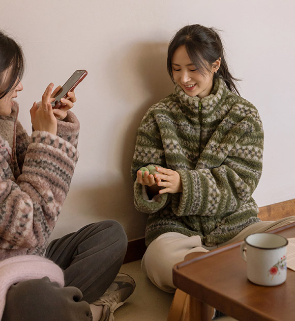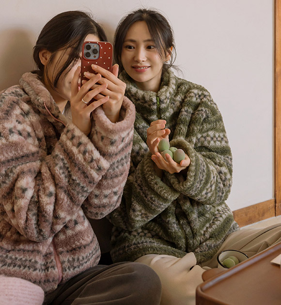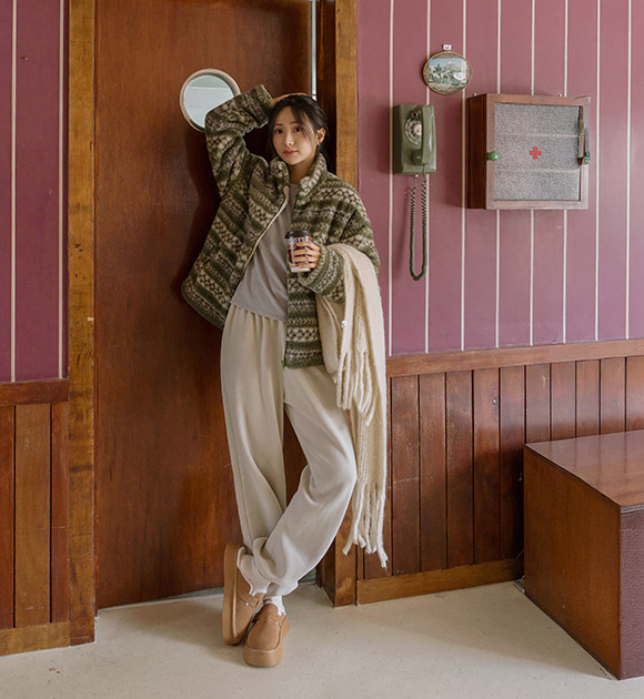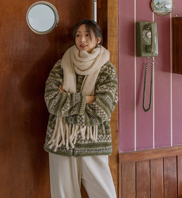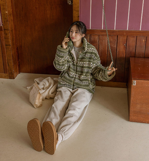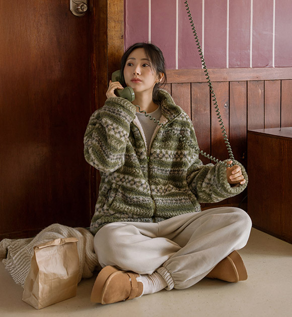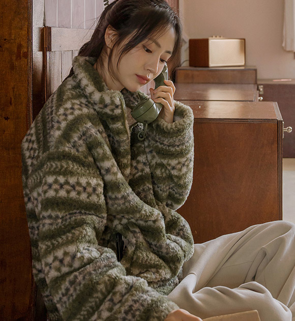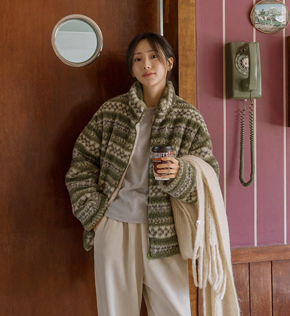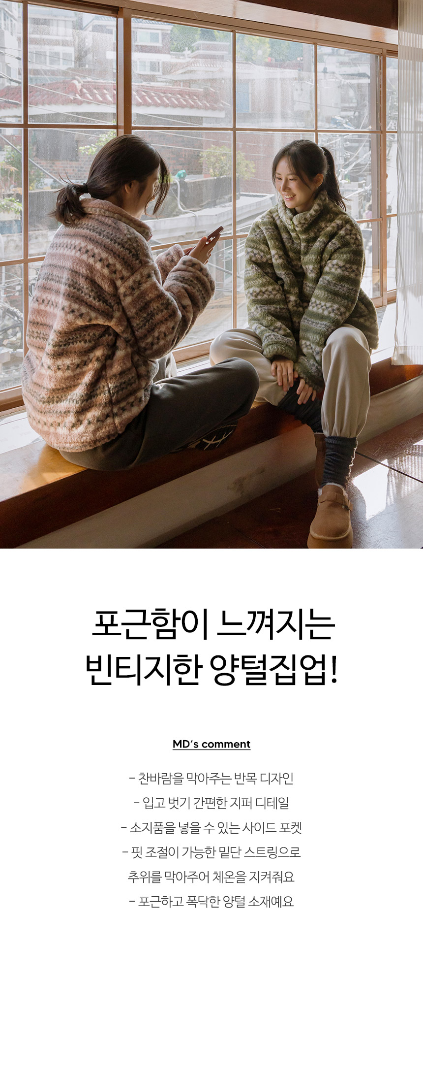 빈티지한 감성이 느껴지는 지그재그 양털 집업이구요, 부드럽고 포근한 터치로 따듯하게 입기 좋은 아이템이에요 :) 캠핑, 여행 좋아하시면 추천해드려요