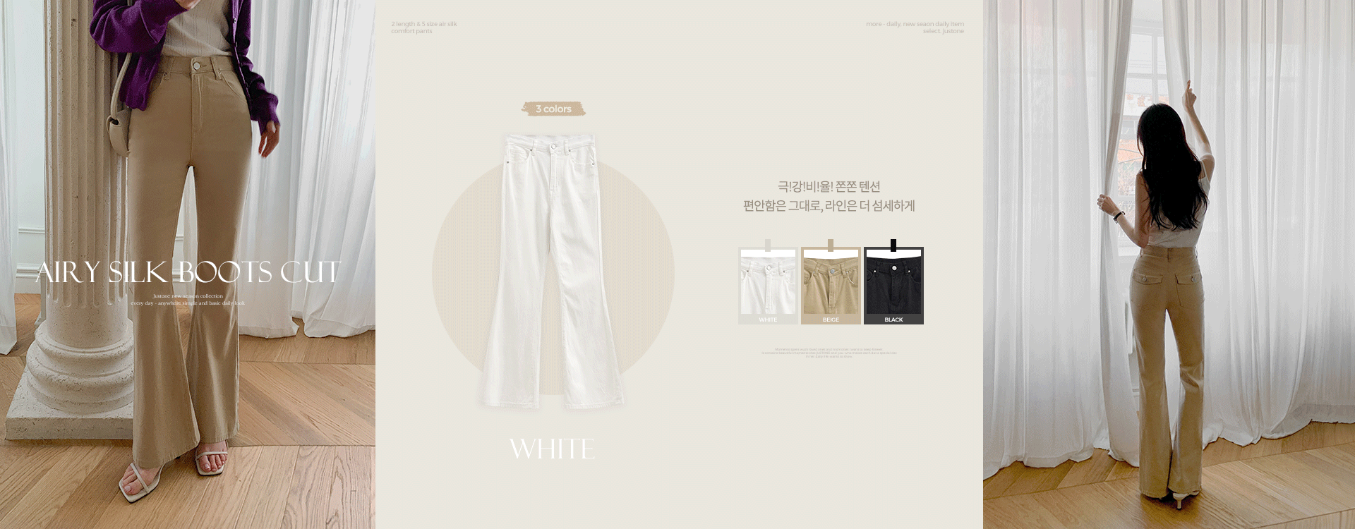 부담스럽지 않은 여유있는 부츠컷으로 다리가 길~어 보이고 슬림해 보이구요,