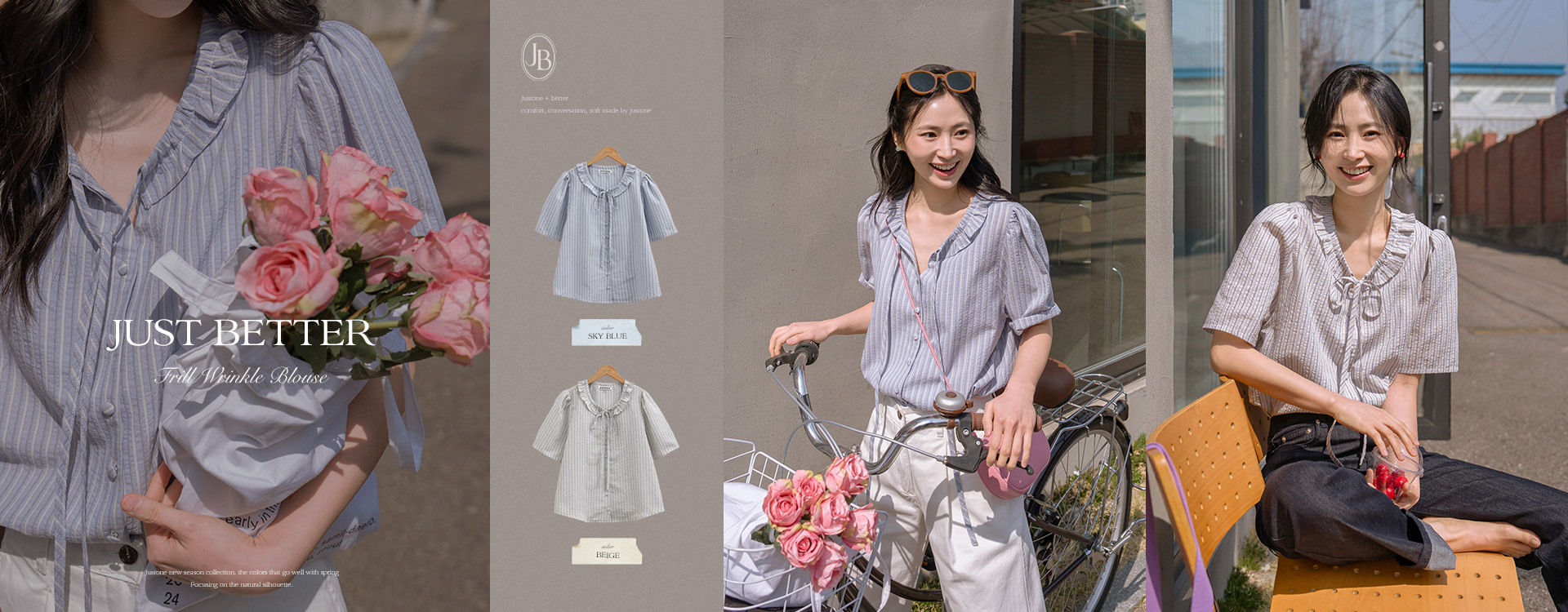 - [JUST BETTER] 베러 볼륨 자수 스트라이프 티