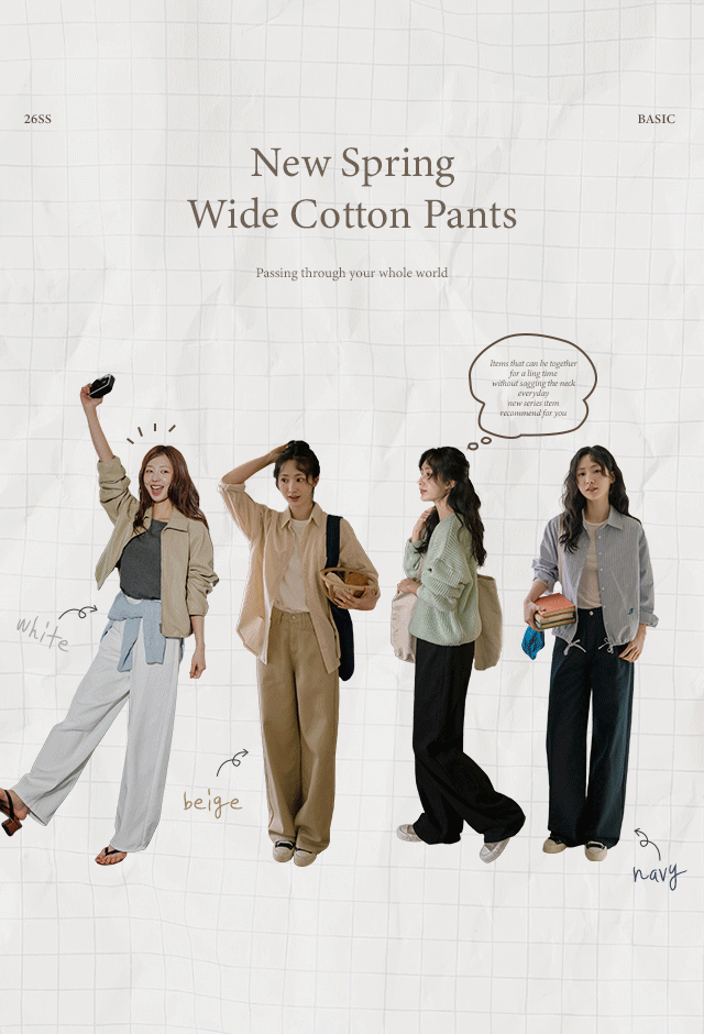 허리편한 5컬러 와이드 코튼팬츠(숏/기본/롱)