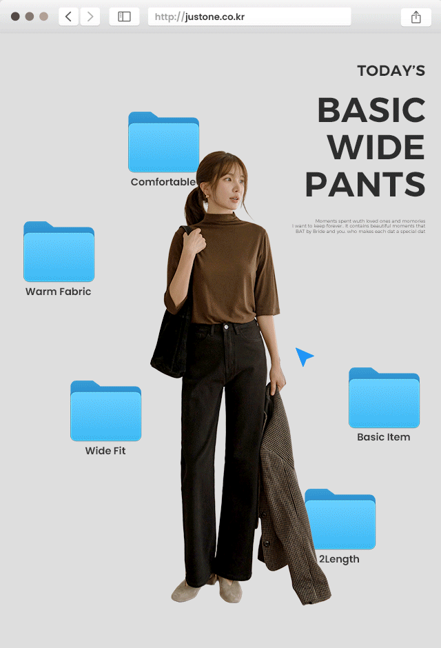 전체적으로 하체를 완벽하게 커버해주는 와이드 팬츠! 기본 디자인인 만큼 바쁜 아침에 손쉽게 코디하기 좋으며, 히든 밴딩과 유연한 신축성으로 하루 종일 편안하게 착용되어 만족도가 높답니다~34,800원26,800원