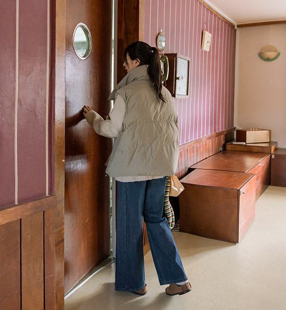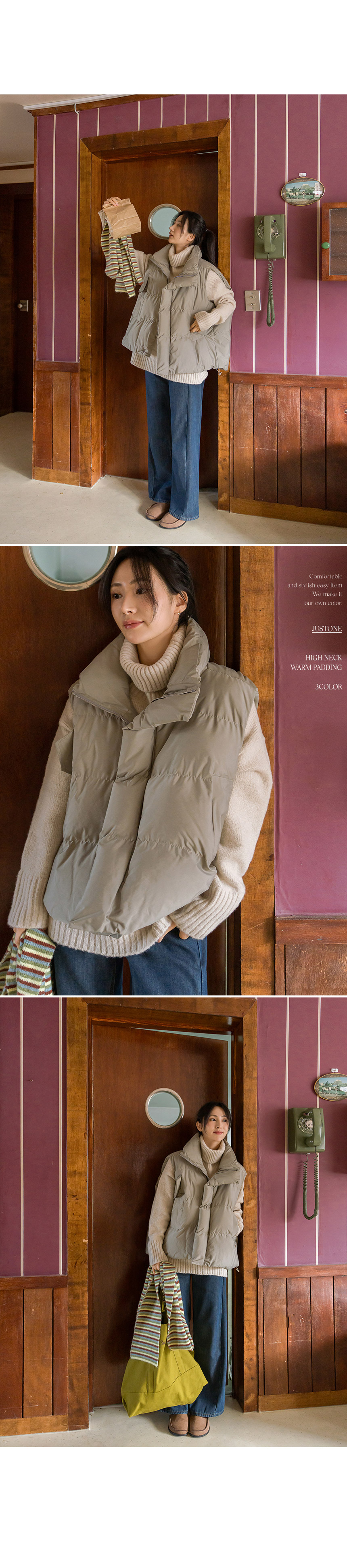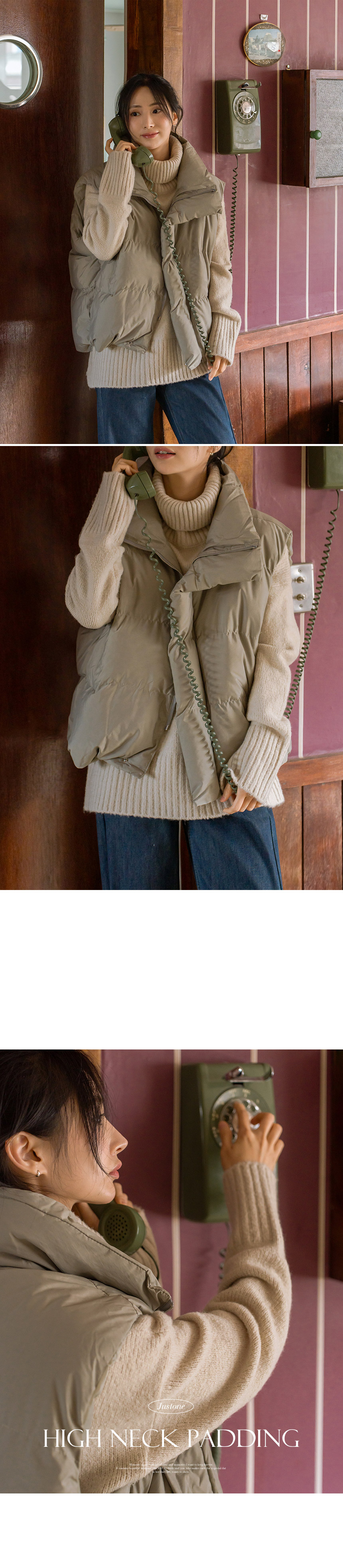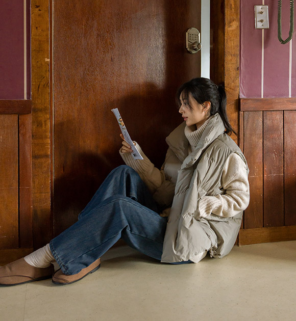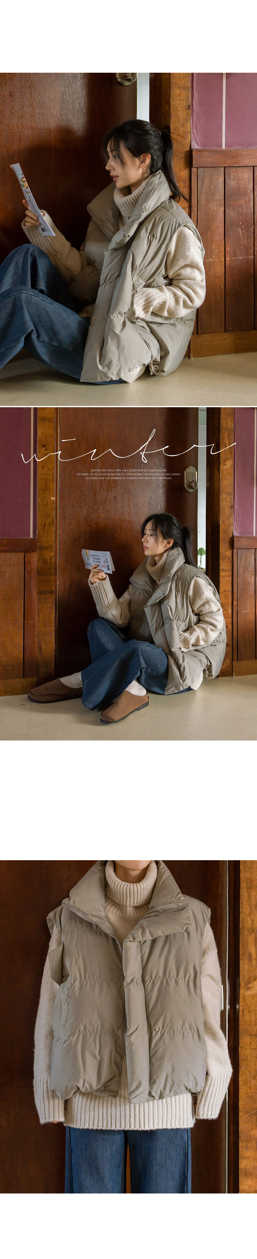 루즈한 핏으로 군살을 커버해주어 편안하게 입기 좋은 패딩조끼구요 가벼우면서 포근한 터치로 이지하게 착용 가능한 아이템이에요