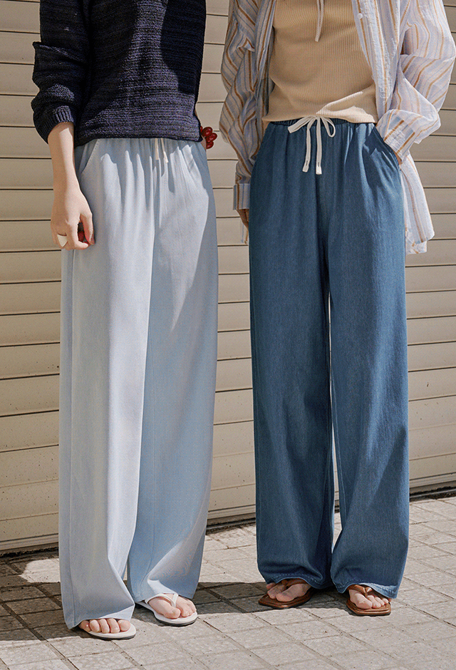 [💕고객만족도최고✨] 쿨에어 텐셀 뒷밴딩 와이드진(숏/롱)