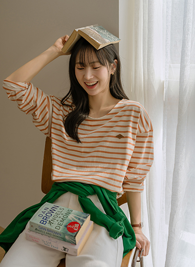 심플하고 간결한 레터링이 포인트가 되어주는 반팔티구요~ 거기에 모달이 혼방된 가벼운 원단으로 촉촉하고 시원한 터치로 여름까지 쭉-! 입기 좋아요 -