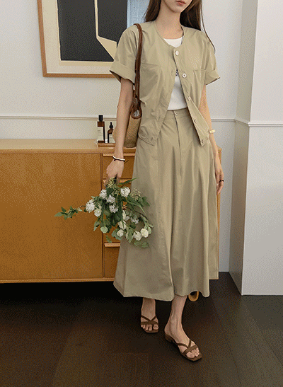 산뜻하면서도 세련된 셋업 코디가 가능한 자켓&스커트 아이템이구요~ 가볍게 바스락거리는 원단으로 구김이 없으면서 몸에 감기지 않아 쾌적하며, 따로 또 같이 스타일링할 수 있어 실용적이랍니다! -