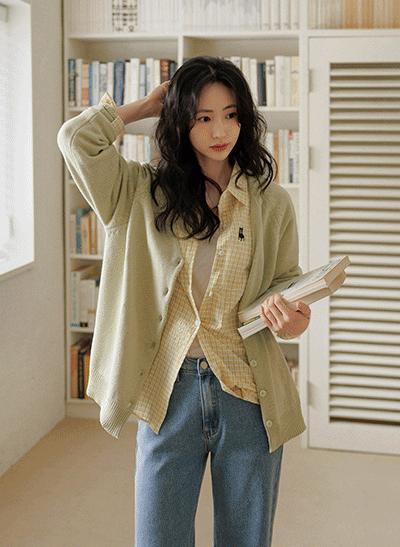 네크라인 뒤쪽에 컬러자수로 포인트가 되어주는 브이넥 가디건이에요! 같은 소재, 컬러의 브이넥 티도 준비되어 있으니, 취향에 따라 골라 입어보세요 :) -