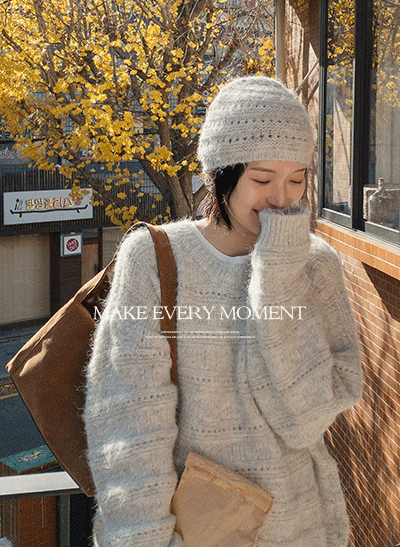 니트와 모자까지 귀여운 세트구성!여리여리하게 만들어 주는 울 니트 추천드려요~!포근한 울 소재감에 펀칭 짜임 원단 자체가 포인트가 되어줘서 소장가치 있는 데일리템이예요! -