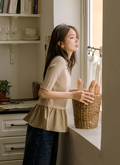 신경써서 레이어드한 것처럼 예쁜, 끝단 레이스 프릴이 포인트인 가디건이구요~ 앞쪽 허리선에 더해진 스트링을 조여 볼륨감 있는 실루엣으로 연출하면 더욱 로맨틱해지는 아이템이에요♥ -