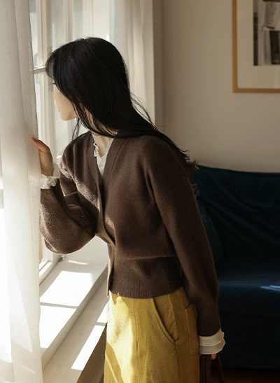 여리한 무드가 물씬 느껴지는 가디건이에요 입었을때 볼룸감 있고 여성스러운 실루엣을 연출해 드리면서 적당한 세미 크롭 기장으로 다양한 하의와 매치하시기 좋답니다 -
