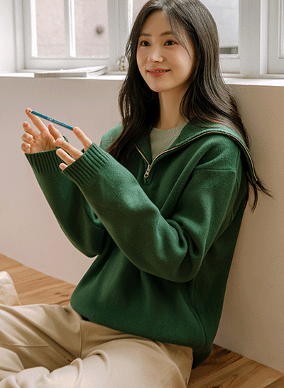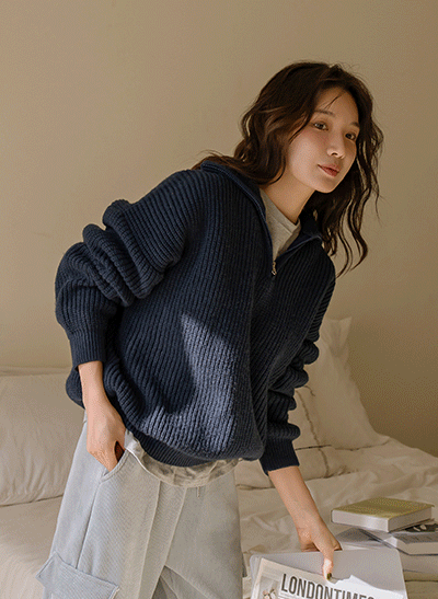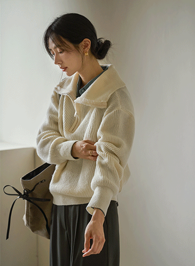 도톰하고 포근한 니트 소재로 f/w에 입기 좋은 아이템이구요, 하이넥 디자인의 반지퍼로 그날 코디에 따라 다양한 스타일링이 가능해요 -