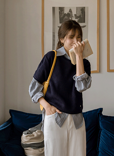 입체적인 짜임 디테일이 멋스러운 니트에요! 하나만 입어도 포인트가 되어주며 아우터 안에 이너로 입어도 밋밋하지 않게 스타일링하시기 좋답니다:) -