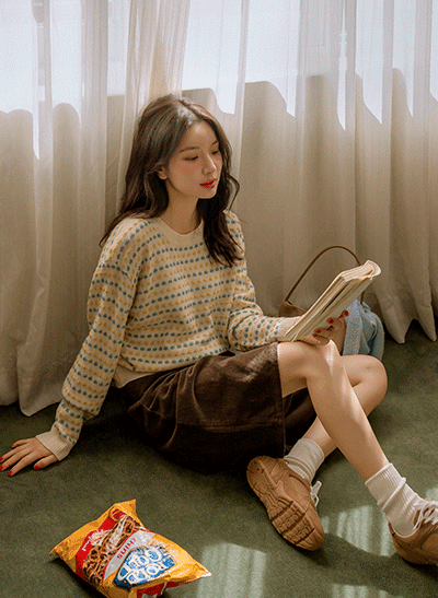 탄탄한 핏이 매력적이라 단독으로 입어도 좋은 라운드 니트구요, 자켓이나 아우터 안에 이너로 활용해도 부해 보이지 않아요! 알록달록한 컬러감이 예쁜 니트랍니다~ -