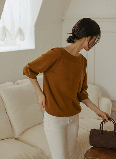 목선과 어깨 라인이 여리여리하게 연출되는 보트넥 니트구요~ 산뜻하면서도 든든한 7부 소매로 지금 이 시즌에 입기 좋답니다! 촉촉한 비스코스가 혼방되어 단독으로 입어도 자극 없이 부드러워요 -