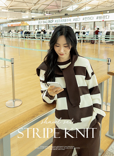 - 4DA31924CW_여유핏 단가라 니트(니트숄set)