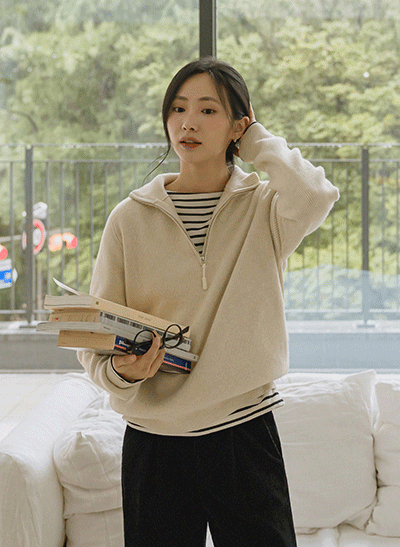 가을부터 겨울까지 활용하기 좋은 포근하면서도 든든한 반집업 니트! 다양한 이너를 껴입어 레이어링하기 좋은 여유핏이며, 까슬거림 없는 부드러운 터치로 착용감이 편안해요~ - 26,800원