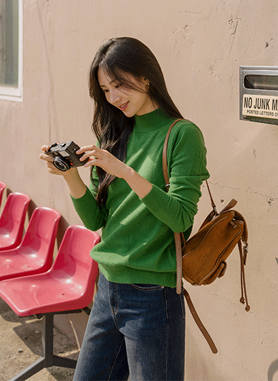 목을 가볍게 감싸주는 반목으로 지금 시즌에 입기 좋은 데일리 니트로 추천하는 아이템이구요! 기본핏이라 아우터 핏을 해치지 않아 깔끔하게 입어지며, 쫀쫀하면서도 부드러운 소재로 착용감이 좋답니다~ -