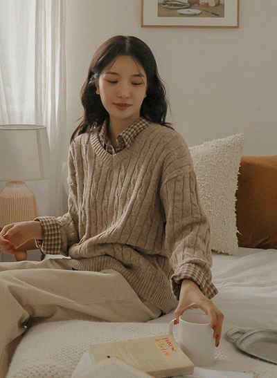 - 6DA30559JJ_포근한 꽈배기 루즈핏니트(라운드/브이넥)