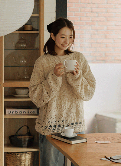 낙낙한 사이즈로 편하게 툭- 입기 좋은 니트구요~ 캐시울 혼방으로 따뜻하면서 부드러운 감촉까지! 거기에 세련된 보카시 짜임으로 여성스러워요 -