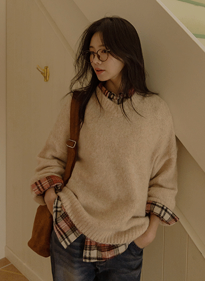 여유핏으로 편안하게 입기 좋은 라운드 니트구요~ 베이직한 디자인으로 활용도가 높아 손쉽게 코디하기 좋으며, 울 혼방의 니트로 따뜻하고 부드럽게 착용돼요! -