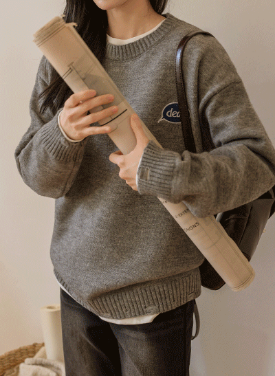 심플한 디자인과 백라인의 레더 라벨 장식으로 포인트를 주어 데일리하게 입기 좋은 니트에요 여유 있게 떨어지는 실루엣으로 편안한 착용감까지 느끼실 수 있는 아이템입니다! -