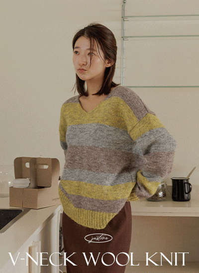 - 5DA32100HR_스콘 배색단가라 브이넥 울니트
