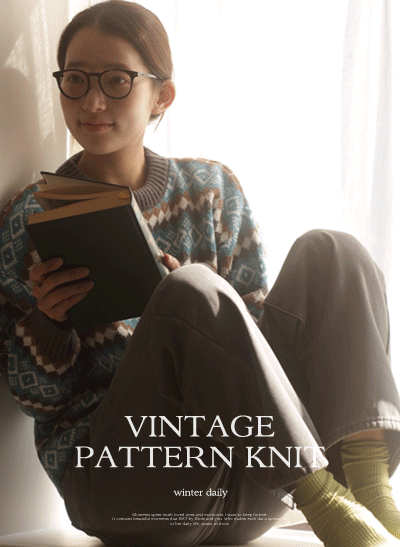 겨울 빈티지 감성이 느껴지는 컬러 배색의 패턴으로 멋스러운 니트구요~ 상체를 여유있게 감싸주어 데일리로 편안하게 입기 좋아요! -