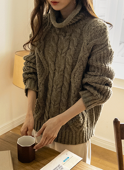 도톰하고 입체적인 꽈배기가 포인트로 하나만 입어도 멋스러운 폴라니트구요, 낙낙한 품과 터틀넥 디자인으로 찬바람을 막아주어 포근한 아이템이에요 -