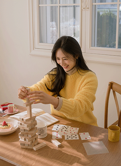 손쉽게 코디하기 좋은 베이직한 디자인으로 활용도가 높으며, 보송보송~ 파우더리한 터치로 기분 좋은 착용감을 선사하는 포근한 니트! 거기에 화사한 컬러감으로 가볍게 포인트 주기에도 너무 좋아요~ -