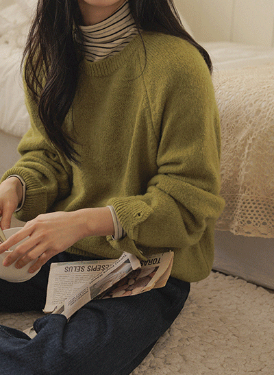 어깨가 부각되지 않는 래글런 디자인에 끝단에 말린 롤링 디테일이 매력적인 베이직한 니트로 여기저기 코디하기 쉬울거에요! -