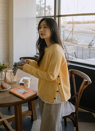 사이드에 버튼으로 포인트가 되어주는 낙낙한 데일리 니트에요 안에 티셔츠를 레이어드해서 입기 좋은 도톰하고 따듯한 울니트에요 -