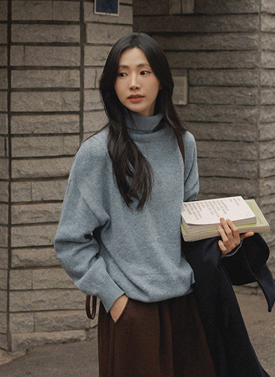 도톰한 두께의 비스코스 소재 혼방으로 따뜻하면서도 파우더리하게 착용되며, 목 전체를 덮어주는 폴라넥으로 든든함은 물론, 잔골지 짜임으로 라인이 슬림하게 보여진답니다 -