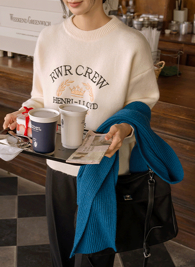 단정한 무드를 자아내는 자수 디테일이 포인트가 되어주고, 탄탄한 두께의 니트 소재로 퀄리티가 좋아 출근룩으로 깔끔하게 입기 좋은 니트에요! -