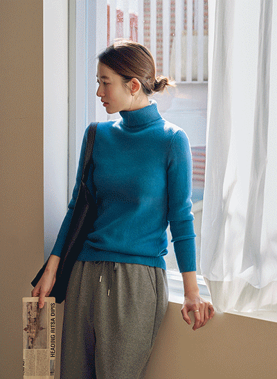 내추럴한 넥라인으로 목을 따듯하게 만들어주며, 슬림하고 쫀쫀한 니트로 바디에 편안하게 다가와 이너로 입기 좋은 아이템이에요 -