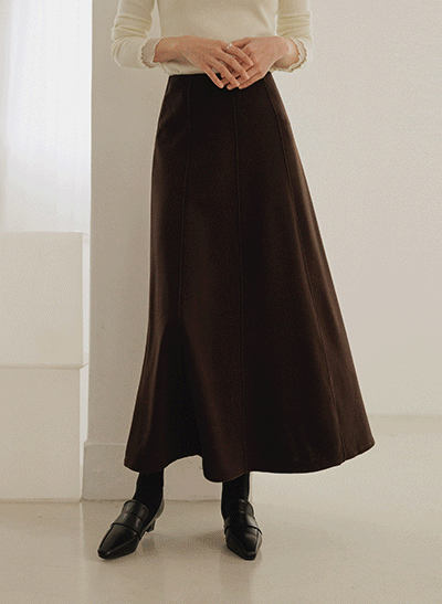 편안함과 몸매 보정, 두가지를 다 잡은 스커트! 허리 와이드 밴딩이 코르셋처럼 뱃살부터 옆구리살까지 싹- 잡아주어 옷태를 예쁘게 연출해주며, 도톰한 밍크 기모 안감으로 보온력까지 우수한 스커트예요 -